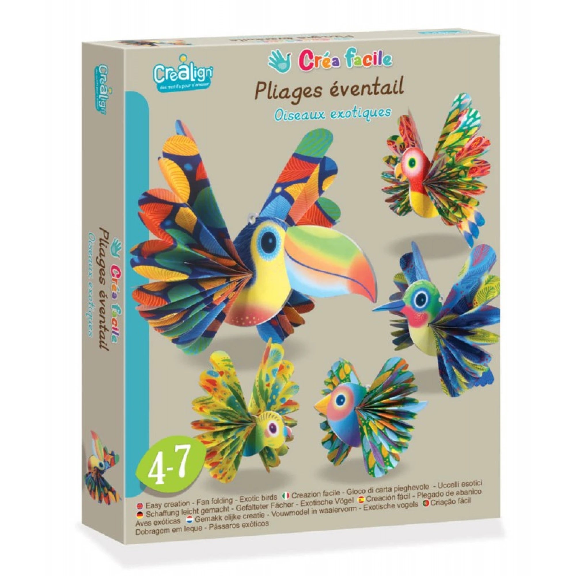 The unique creative set from the French brand Crea Lign will teach children simple creations from paper. Contains 5 figures of exotic birds and 5 pieces of paper to fold - creating bird wings. Children assemble their wings according to the instructions, simply attach them to the birds, and they can hang their creations in the room. This will create a beautiful hanging decoration for them. No scissors or glue needed!