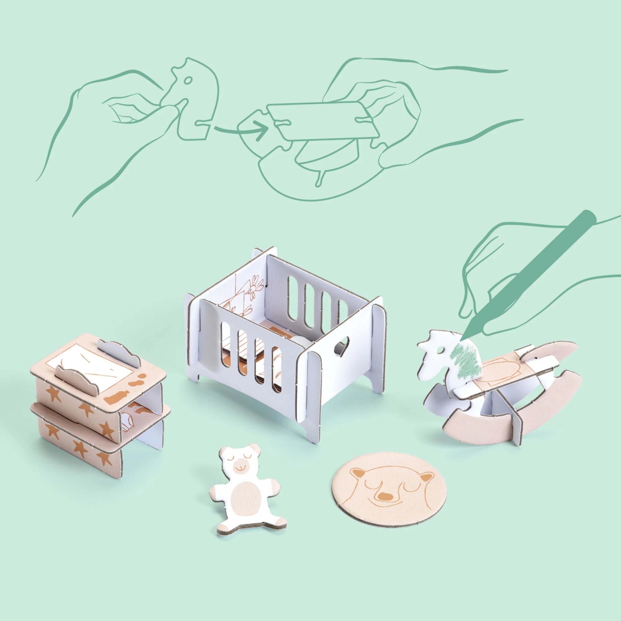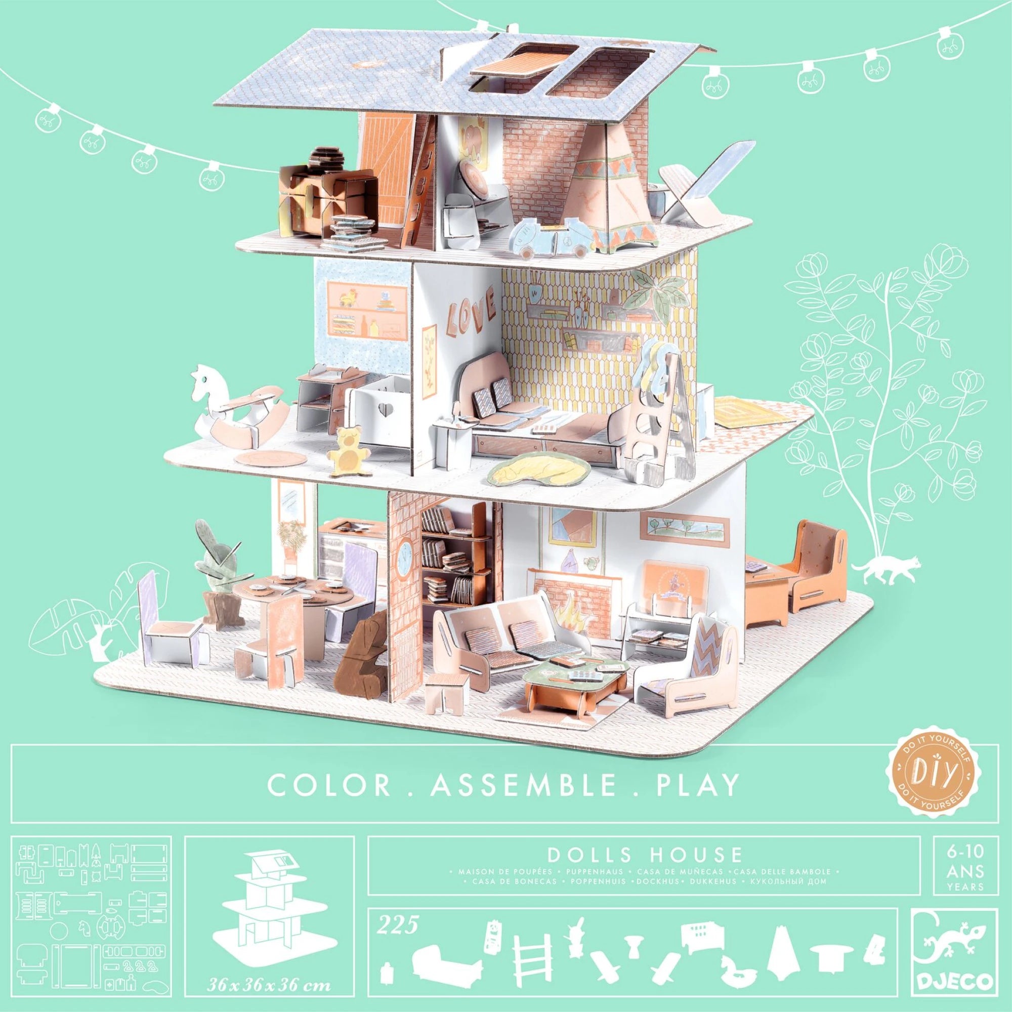Das DIY-Puppenhaus-Setist eine Kreation, die im Handumdrehen zum Spiel wird. Kinder bauen ihrPuppenhaus, dekorieren es und nutzen es dann für ihre Geschichten. Das Haus ist für Puppen bis zu 8 cm geeignet....