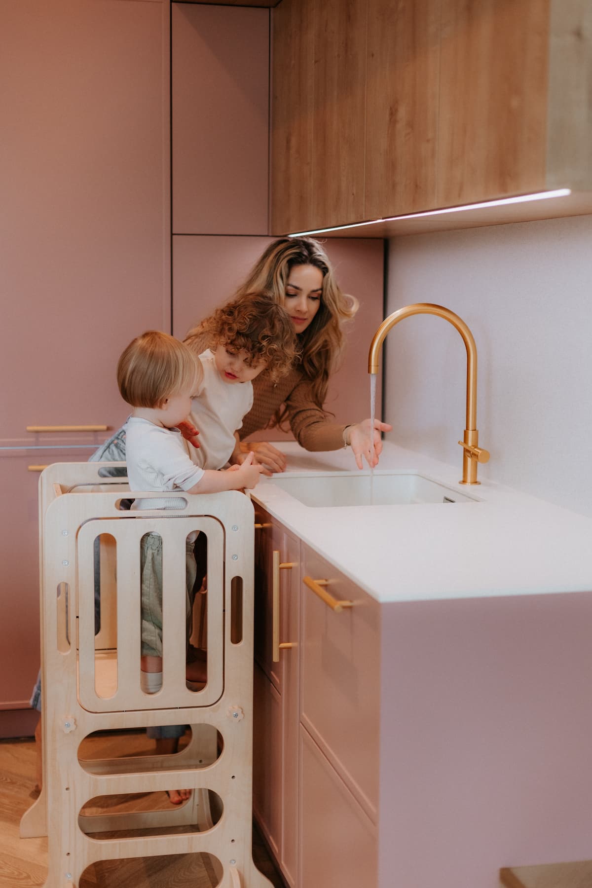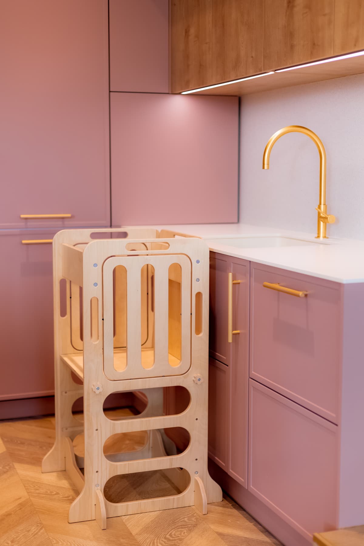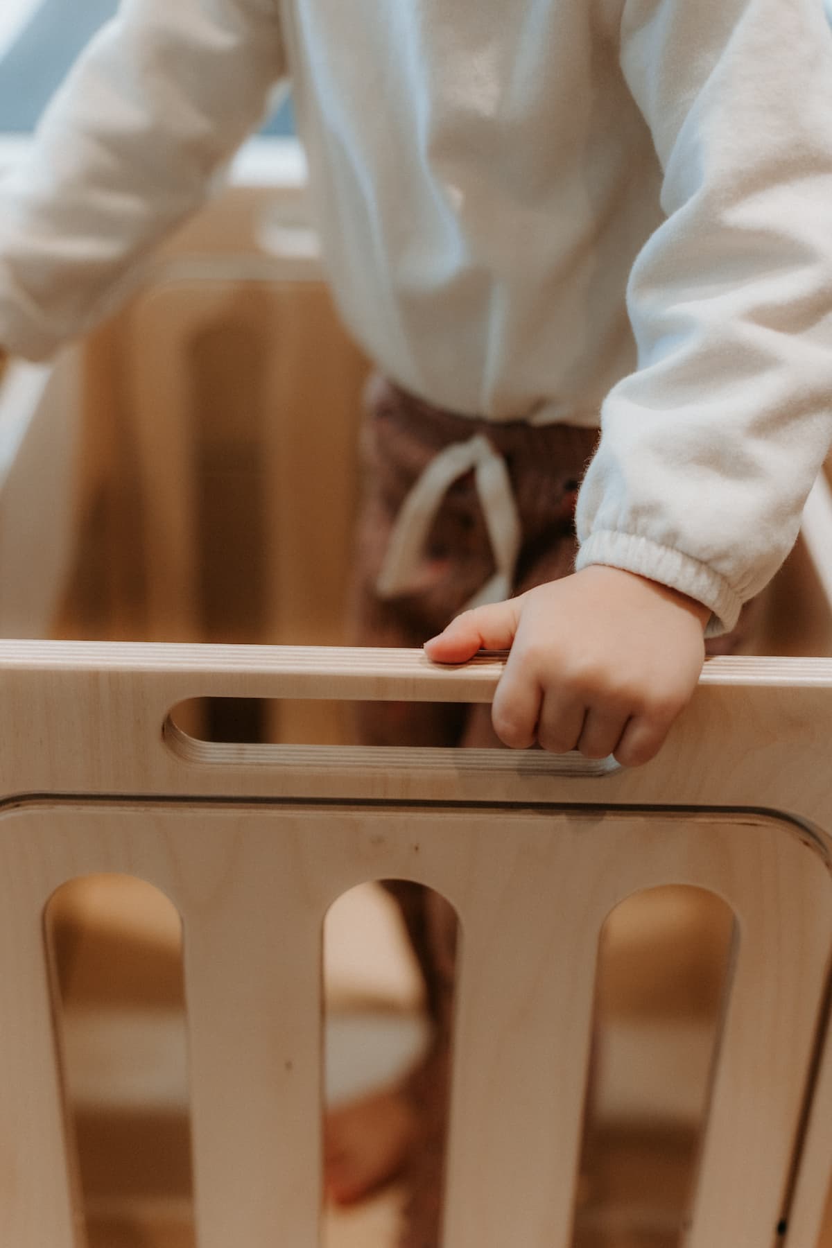 PETINKA LIGHT natureller Lernturm hat vier Sicherheitswände und ist daher für die jüngsten Kinder gedacht, die bereits alleine stehen können. Die seitlichen Sicherheitswände können später einfach abgelegt werden und das Kind kann über eine Leiter auf beiden Seiten frei in den Turm herauf- und herunterkommen.